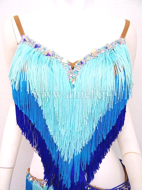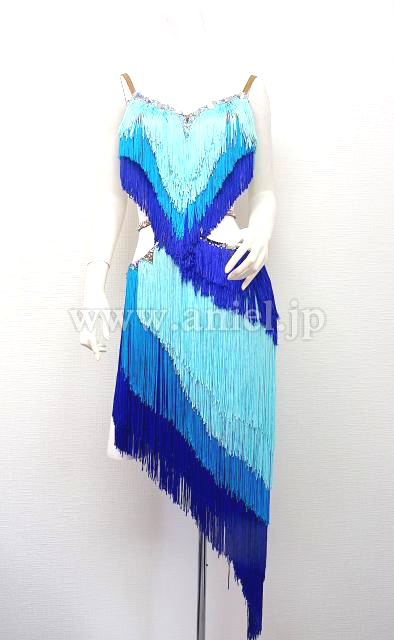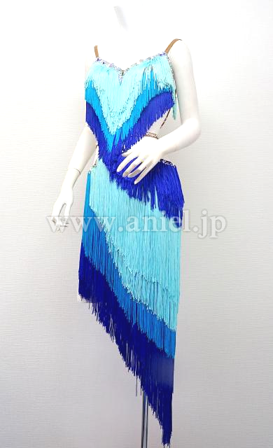 青と水色のフリンジドレス。