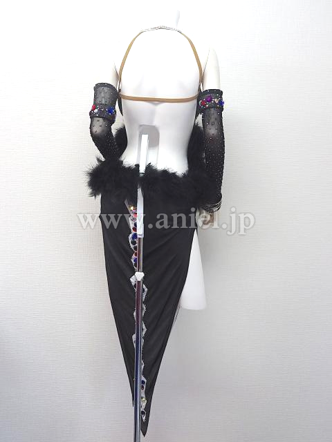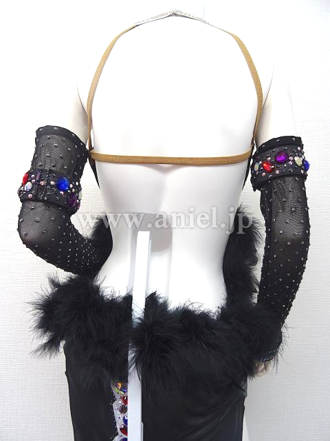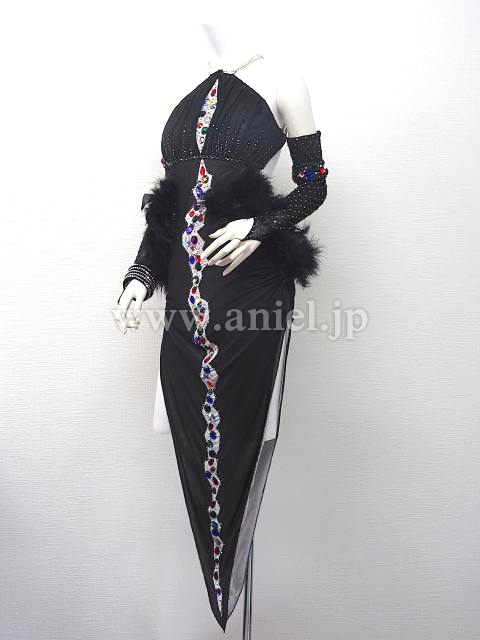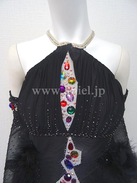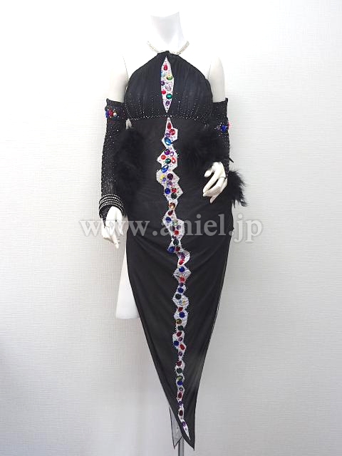 黒にカラフルなストーンが装飾されたドレス。