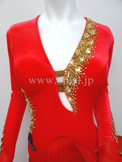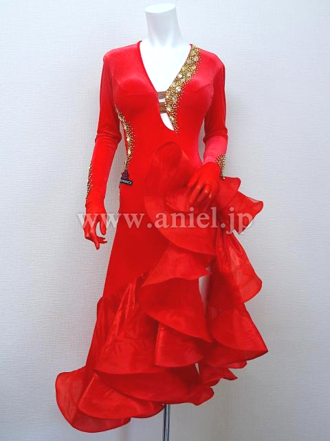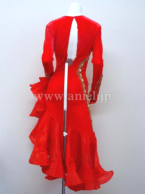 赤のロングスリーブドレス。