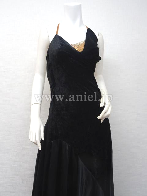黒のシンプルなパソドレスです。ベルベット生地がおしゃれ。