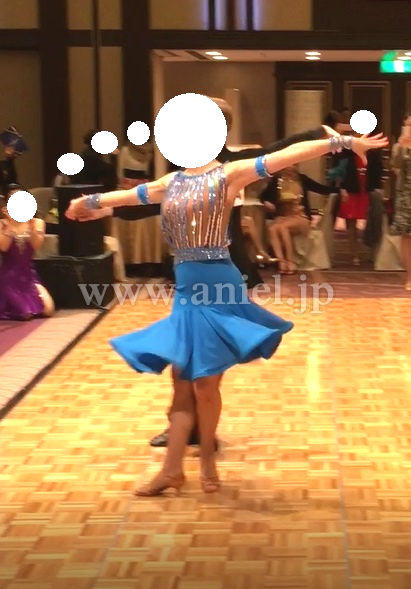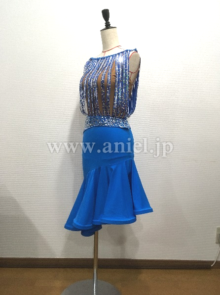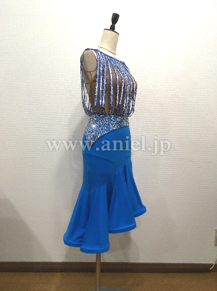 特徴:フロア映えするエレクトリックブルーのラテンドレスです。