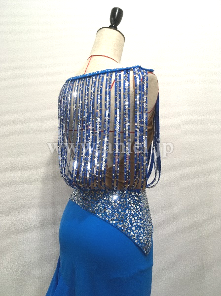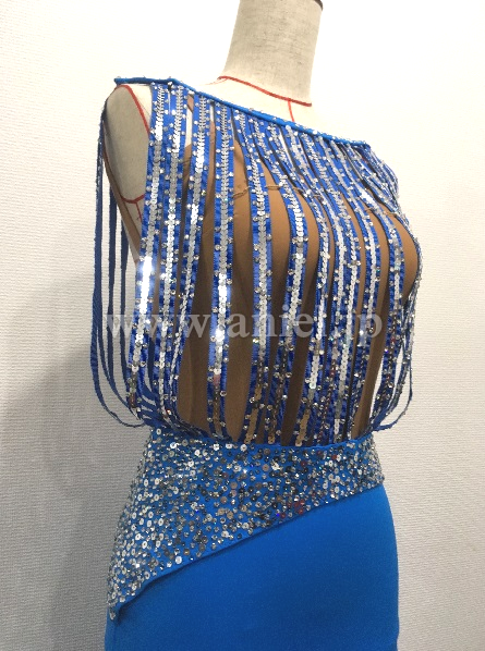 すだれ状の上身頃はよく揺れ、スパンコールとスワロフスキーが踊りを引き立てます。