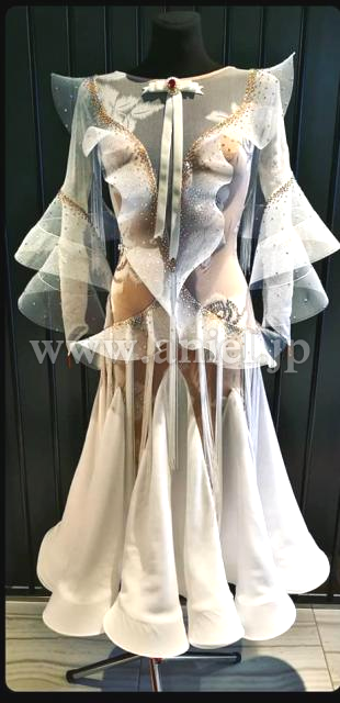 白一色ですがスワロフスキーで所々生地の花柄を強調