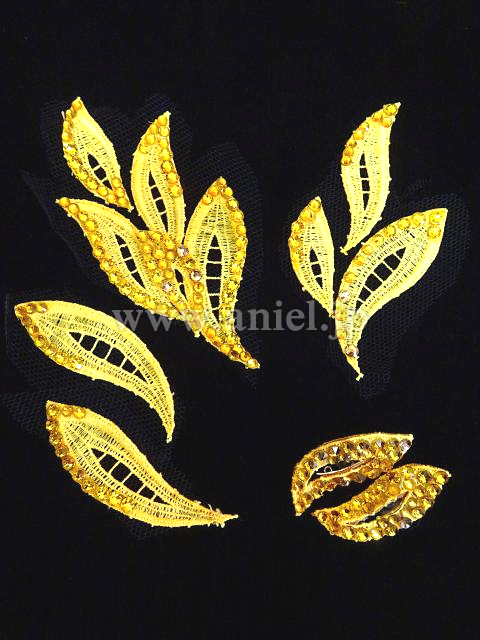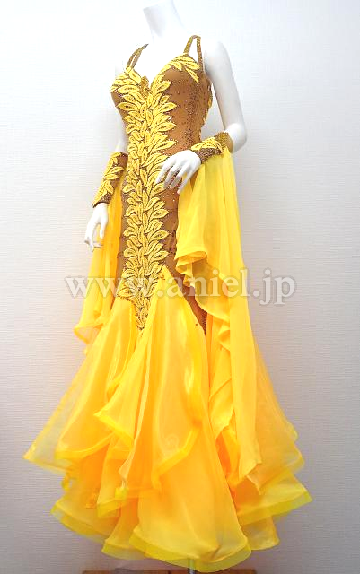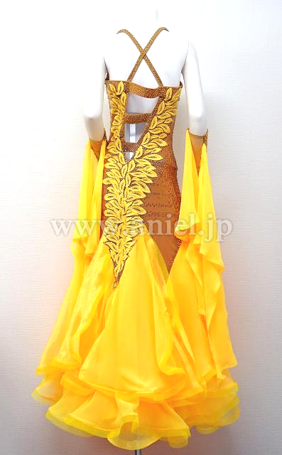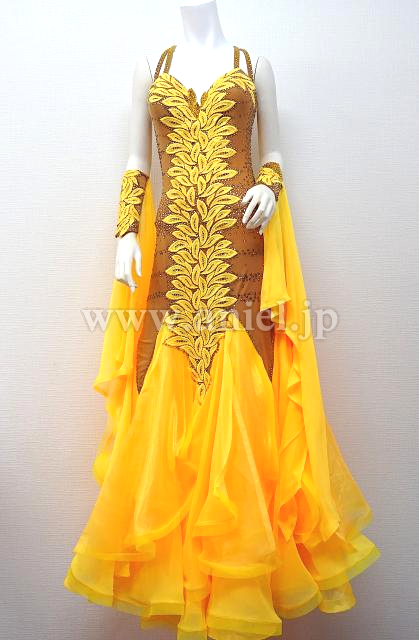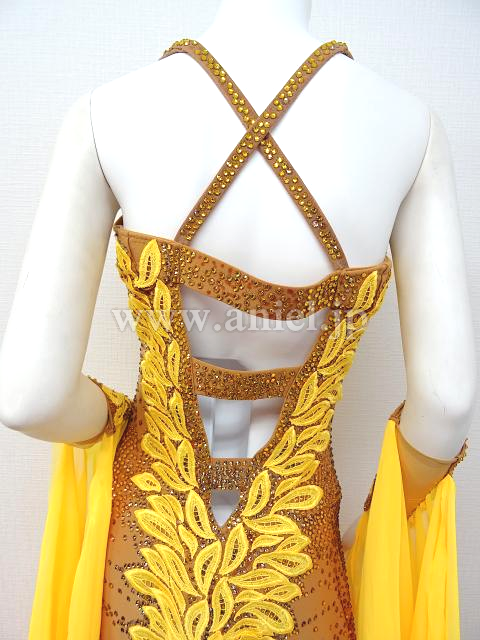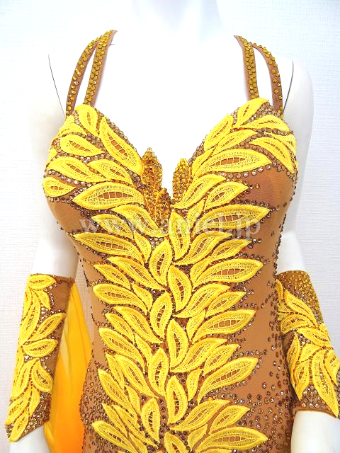 スキンカラーに黄色のリーフモチーフが装飾されたドレス。