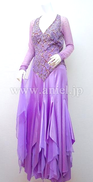 ラベンダーのロングスリーブドレス。