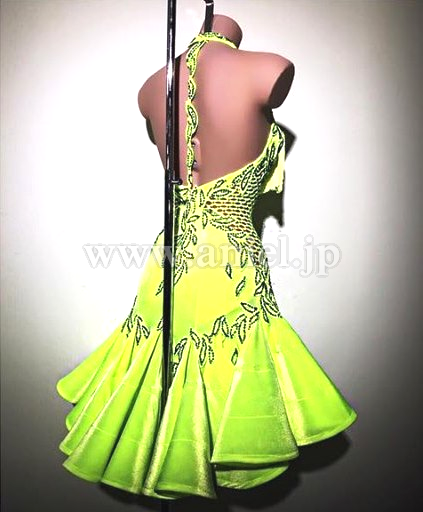 ライムイエローカラーのベルベット生地。とてもよく発色します。