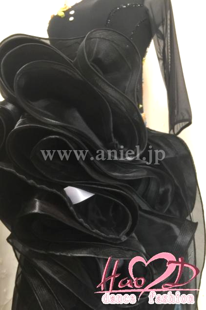 2wayストレッチ・メッシュ生地、同色のライクラ生地のベース地を敷き、デコルテ&袖&背中上部はシースルー仕立て
