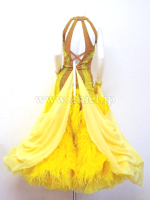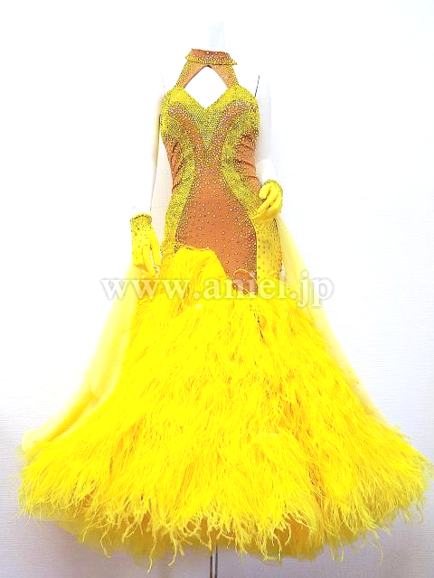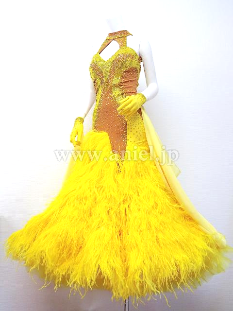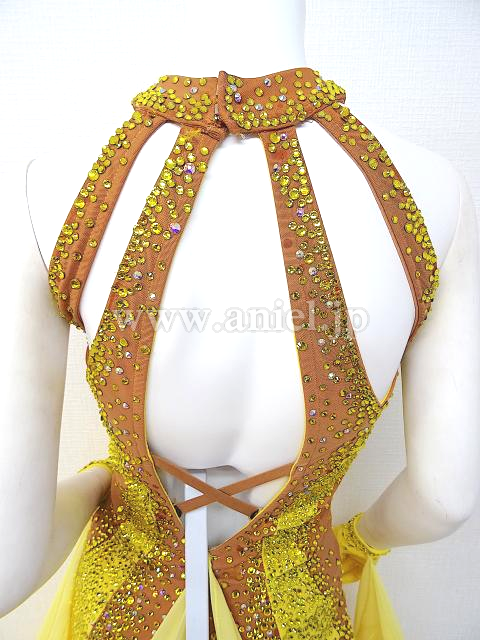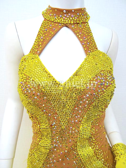 ベージュボディに黄色のストーンがびっしり貼られた豪華なドレスです。
