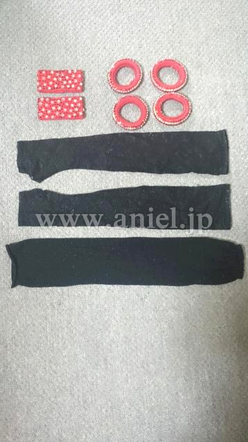 付属でストーン付チョーカー、ストーン付バングル4本、腕用ストーン付バングル2つ、黒レースグローブが付きます。