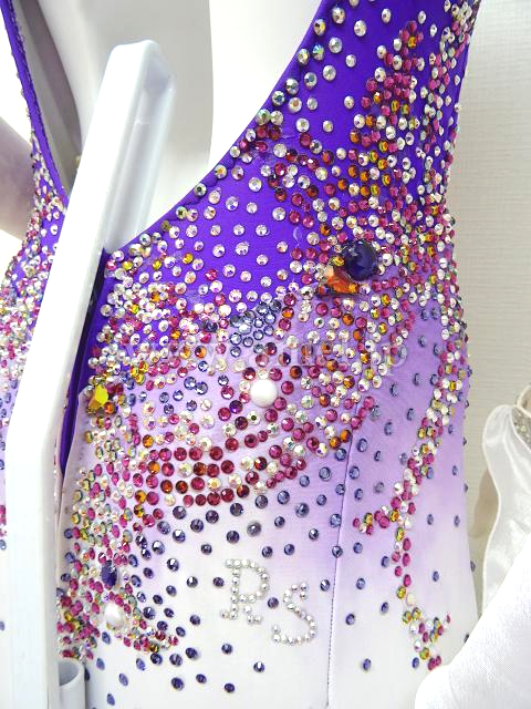 紫から白へのグラデーションが美しく、ボディはカラフルなストーンで装飾されています。