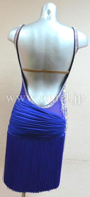 青のボディによく踊るフリンジスカートが付けられたドレスです。