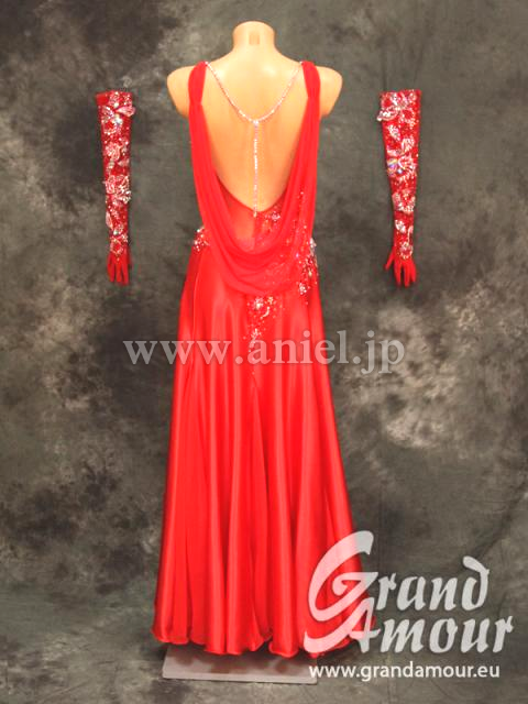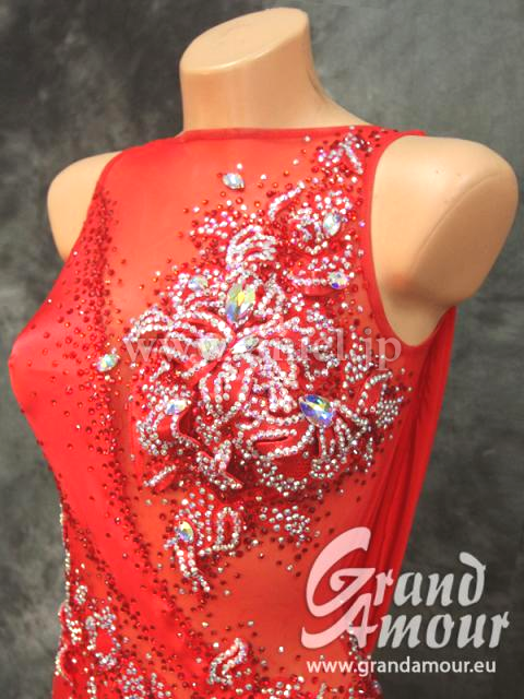 美しいレッドにきらびやかなオーロラのストーンの装飾が立体的に施されてとても華やかです。