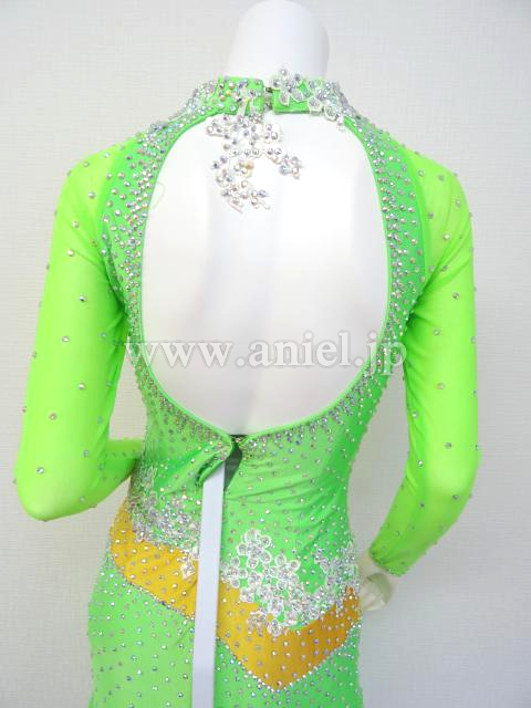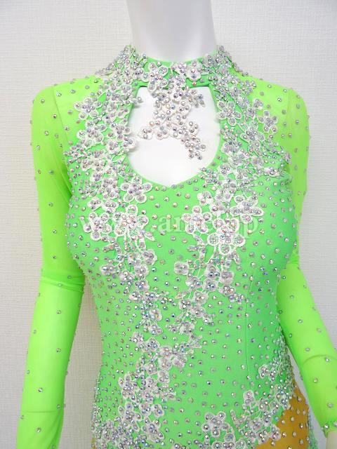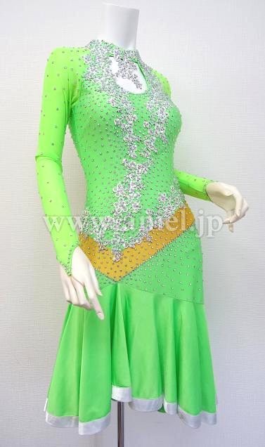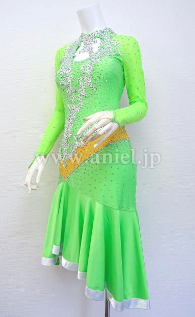 鮮やかな黄緑のドレスです。