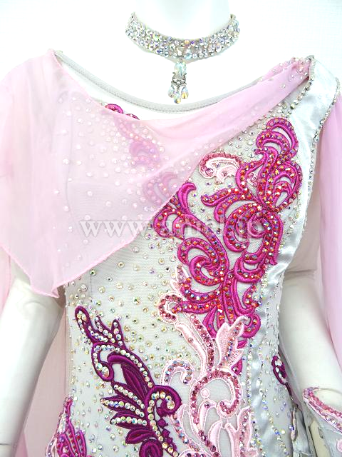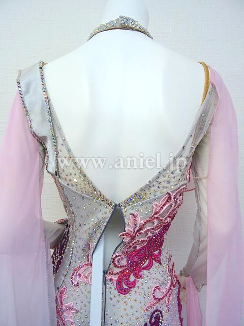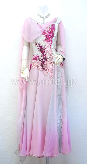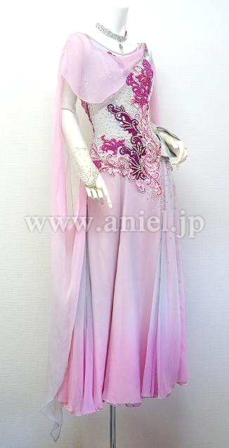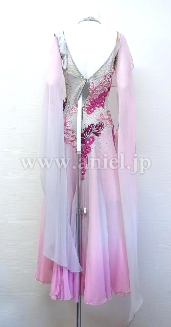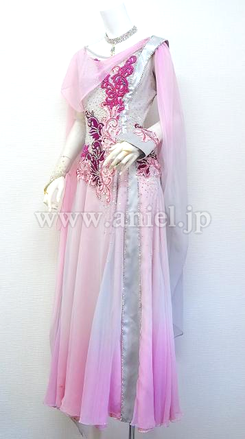 ピンクとグレーのグラデーション生地が美しいドレスです。