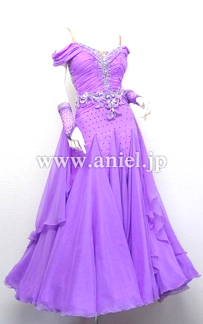 素敵なライラックカラーのオフショルダードレス。