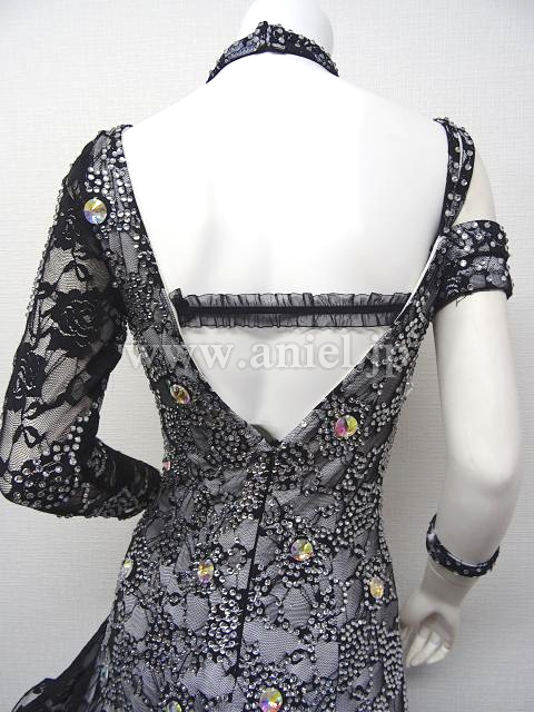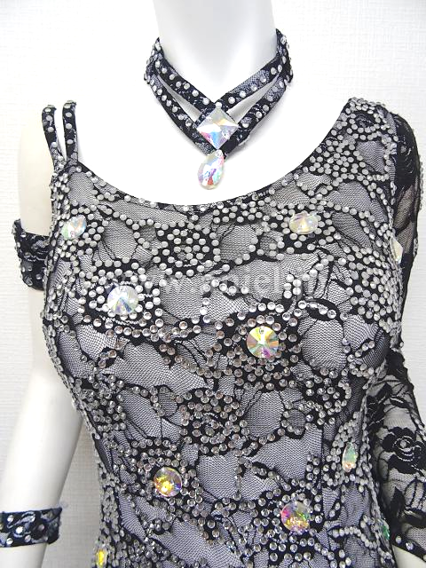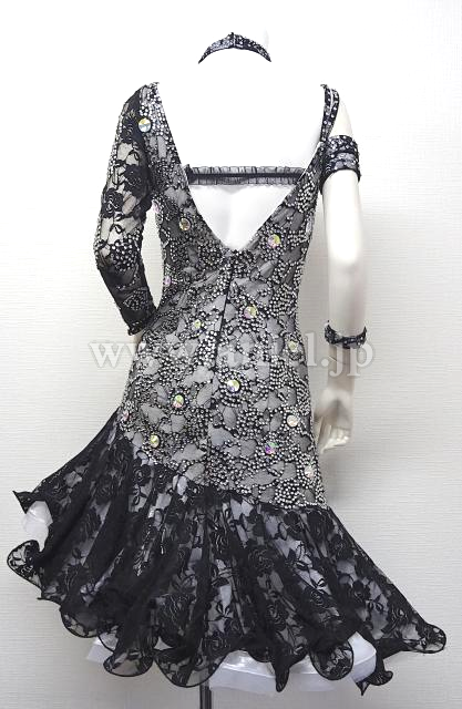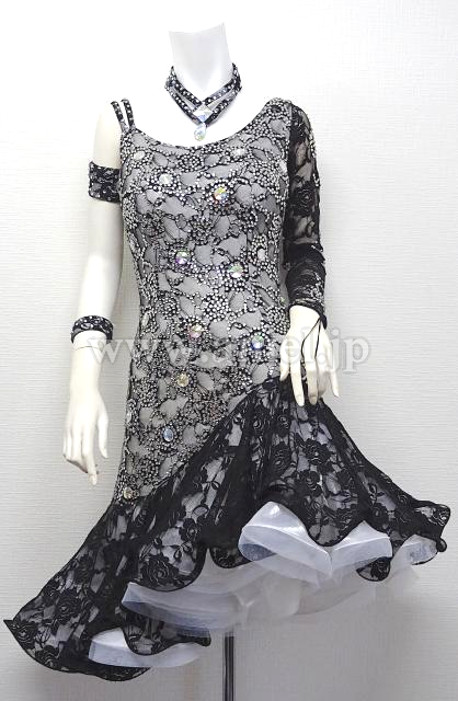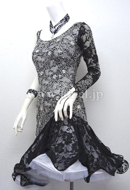 白のボディに黒レースが全面に使われたドレスです。