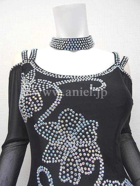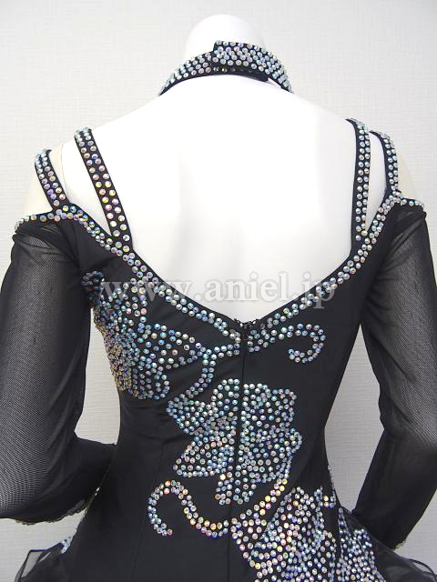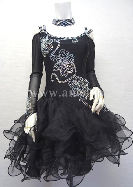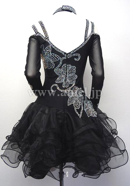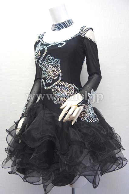 フリルでボリュームのあるスカートに、ボディはストーンで花が描かれています。