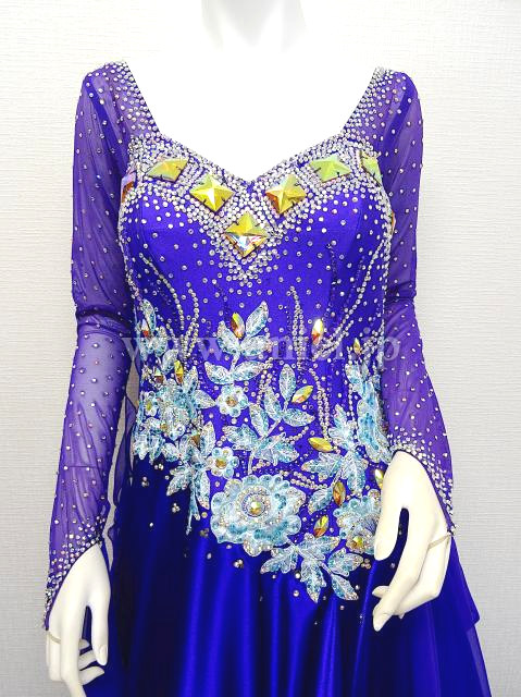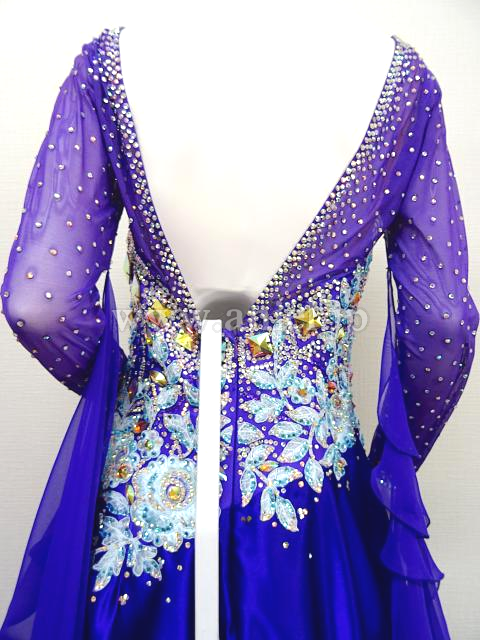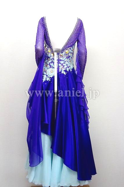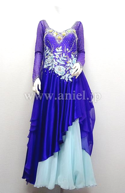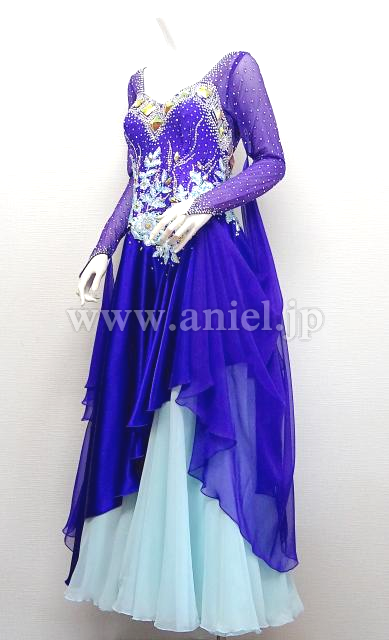 紫と水色のロングスリーブドレス。