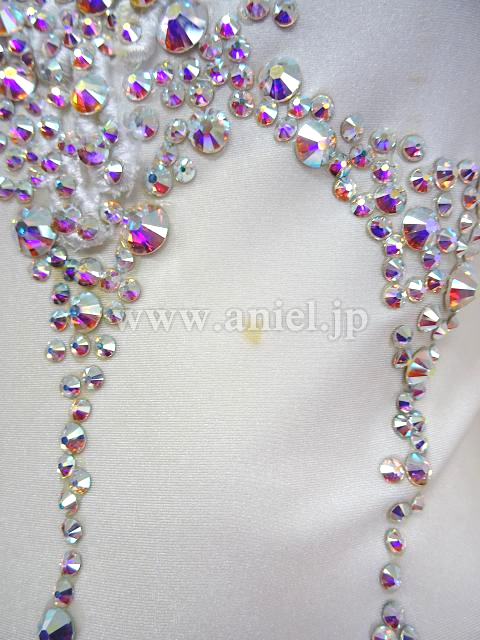 ボディはモチーフレースにたくさんのスワロフスキーストーンで華やかに飾られています。