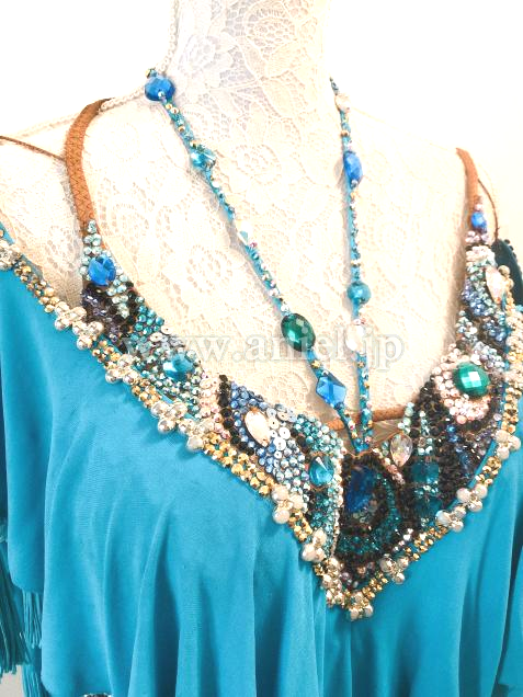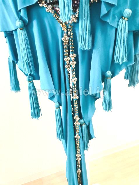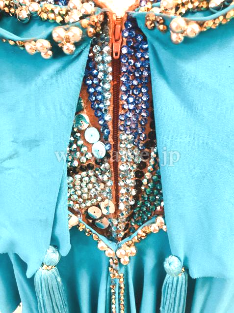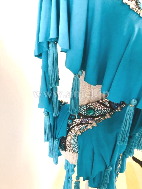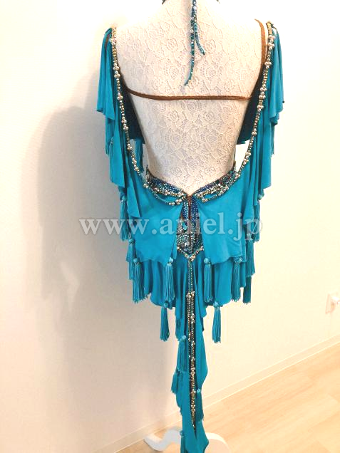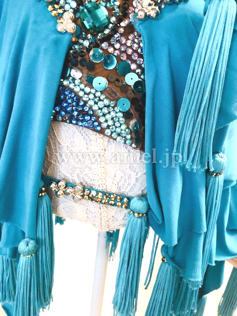 スカイブルーで、フリンジもボディースカート部分共に全体的にとても振れる