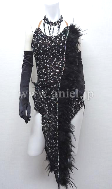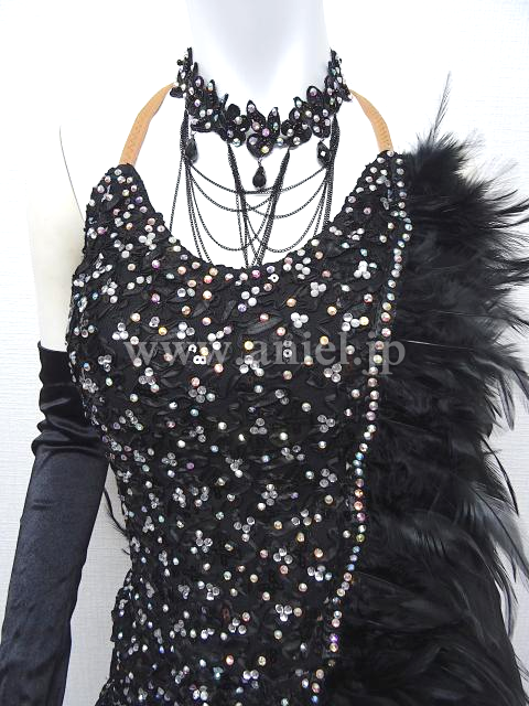 黒の羽根ドレス。