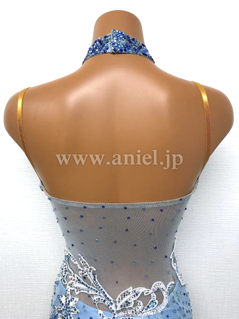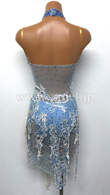 透け感のある生地に白と水色のモチーフが装飾されています。