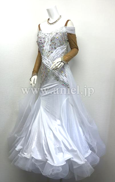 白のオフショルダーロングスリーブドレス