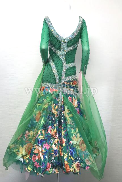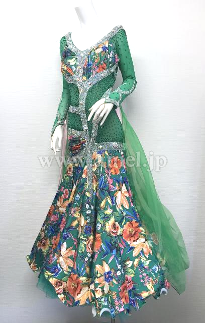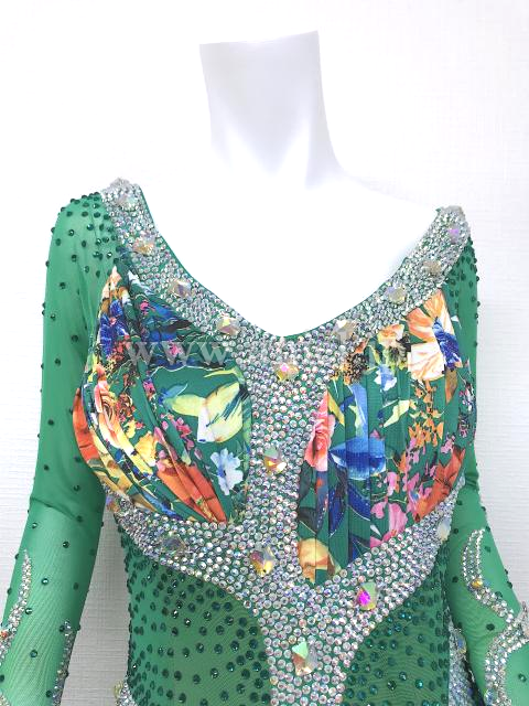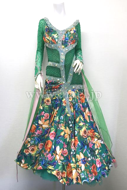 花柄の緑の記事を使用したロングスリーブドレス
