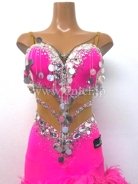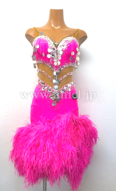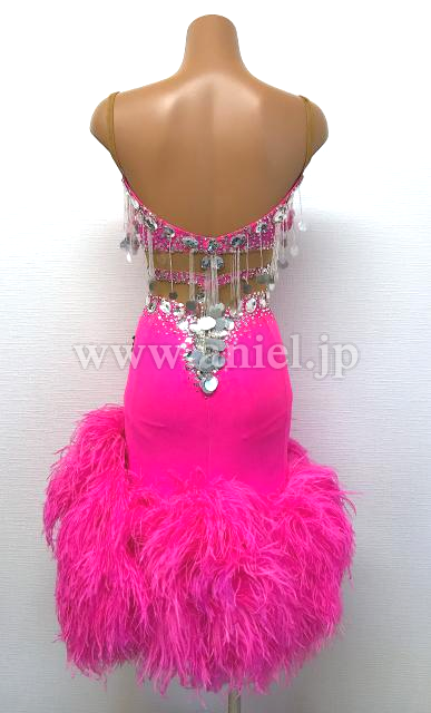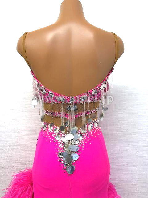 ピンクのマラボーがスカート全体についたボリュームたっぷりのドレスです。