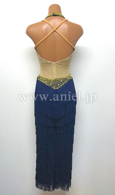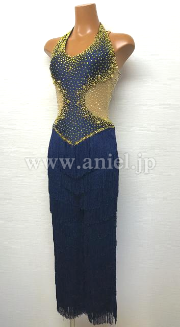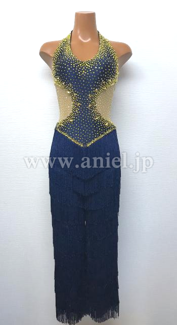 パンツタイプのラテンドレスです。スワロフスキー製ラインストーンを大量に使用して、フリンジも全身的に動きやすい、特別なラテンドレスです。