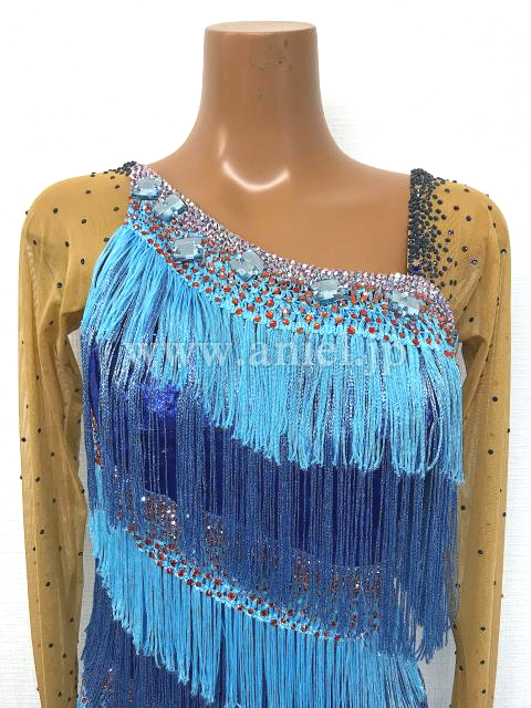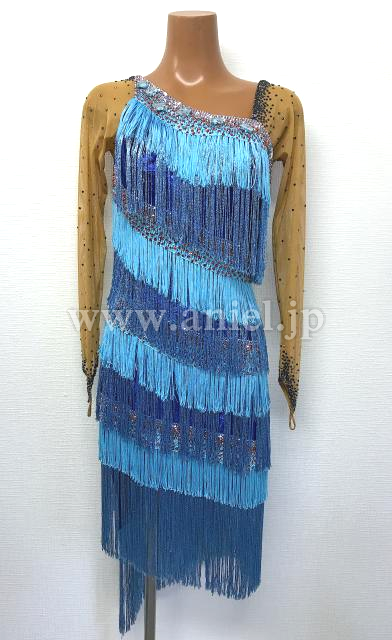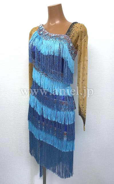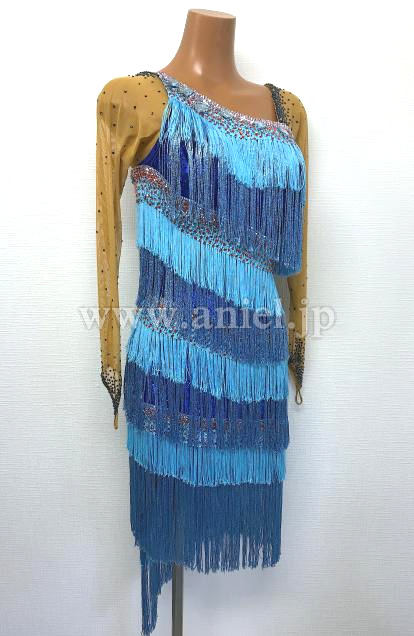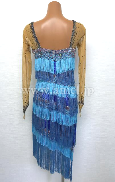 水色と青フリンジのロングスリーブドレス