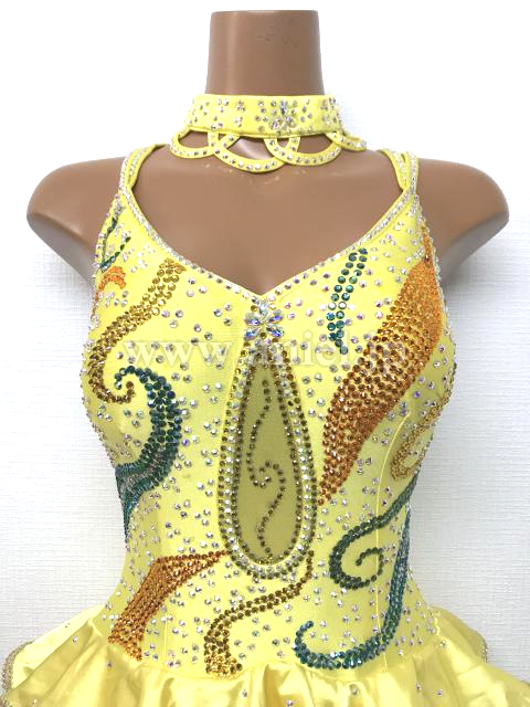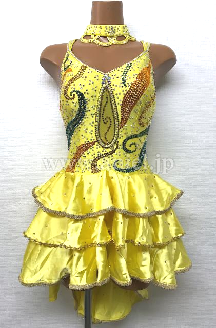 黄色のフリルスカートのドレス
