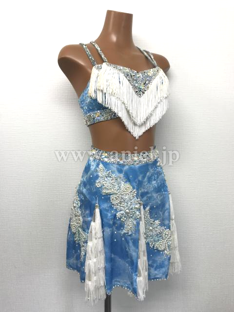 水色と白のフリンジドレス
