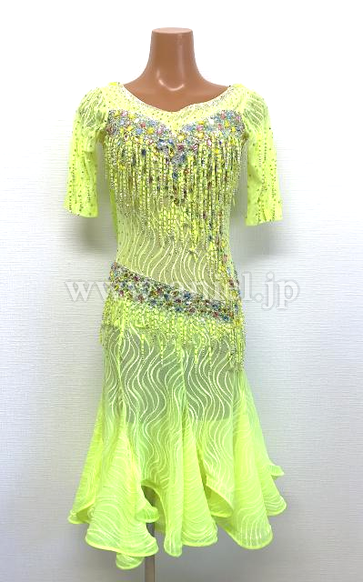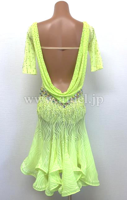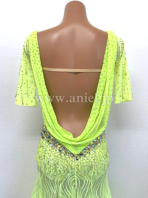 蛍光黄緑のレース生地が使われたドレスです。