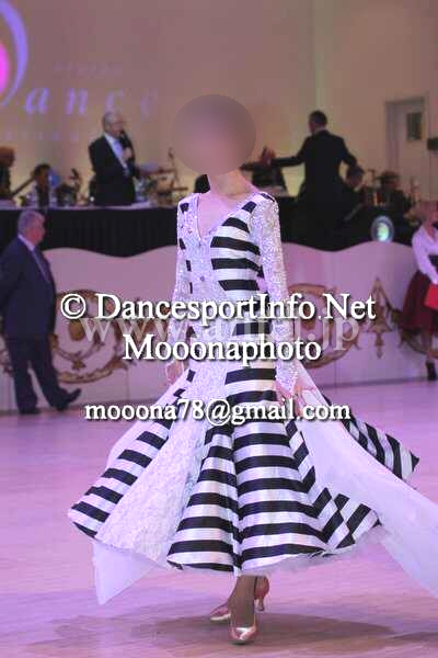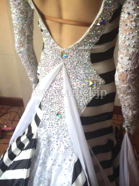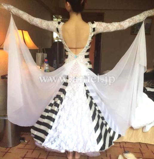 白と黒のはっきりとしたストライプがフロアでとても目立つドレスです。