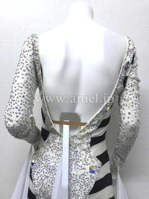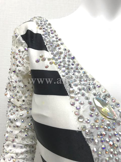 両袖やボディの中心の白のラインには美しいレース生地が使用されたくさんのスワロフスキーストーンとチェコ製ストーンでゴージャスに装飾されています。