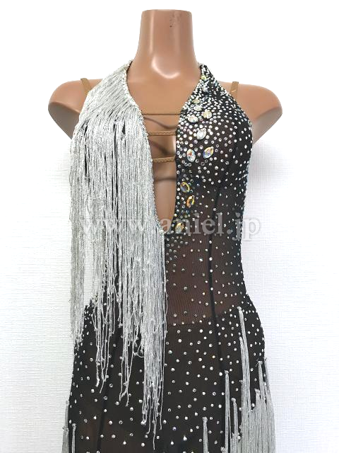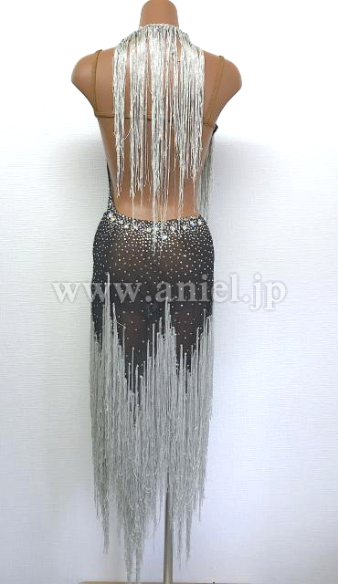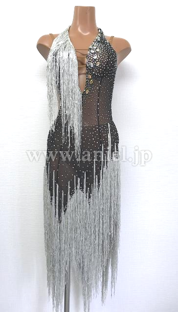 黒の透け感のある生地とシルバーのフリンジドレス