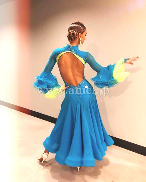 鮮やかなターコイズブルーカラーに蛍光黄緑がアクセントに。