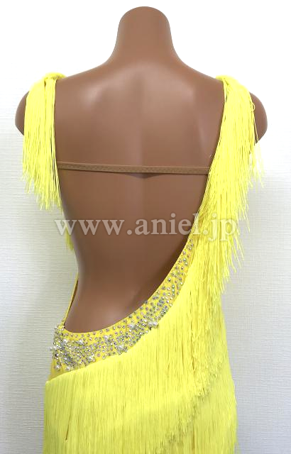 胸もとから裾まで段々フリンジがつけられたとてもよく踊るドレスです。