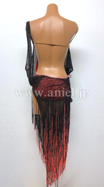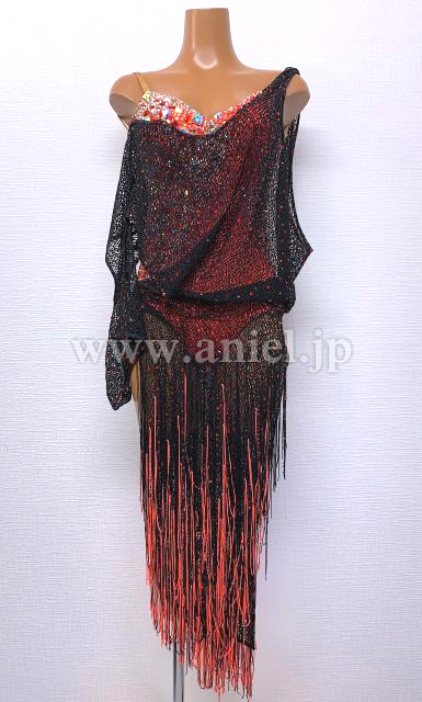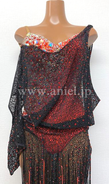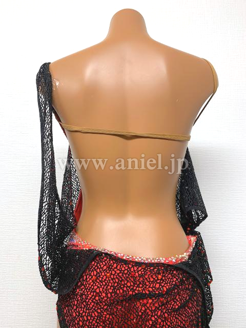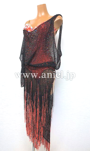 赤のレオタードに黒のネットフィッシュのドレープが素敵なドレス