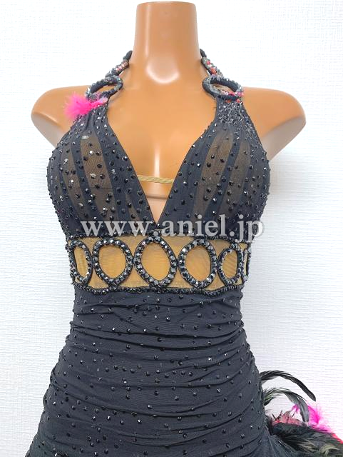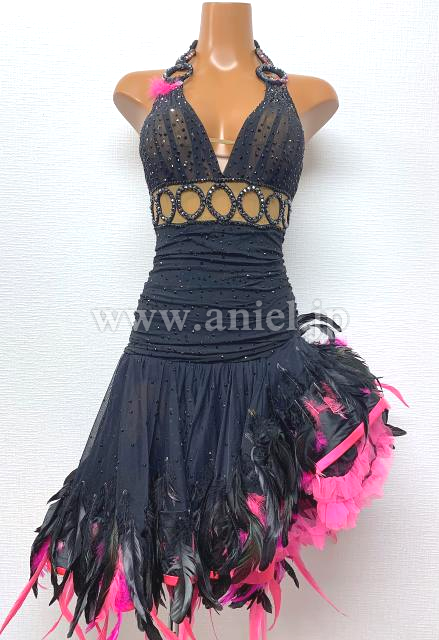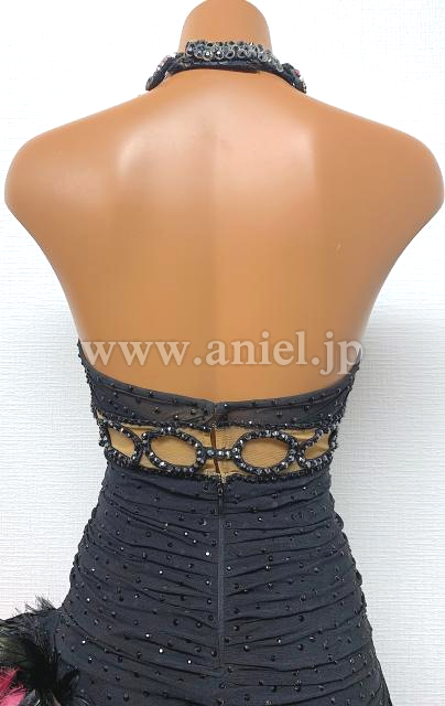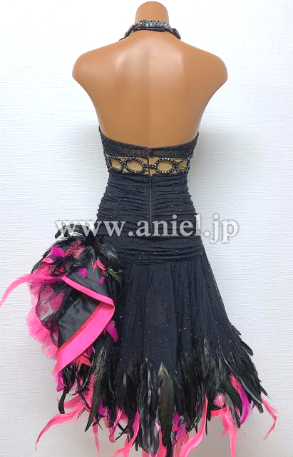 黒とピンクの羽根のホルターネックドレス
