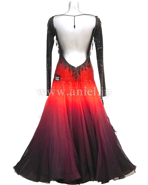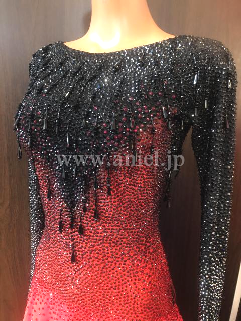 黒から赤へのグラデーションがとても美しい非常に豪華なドレスです。