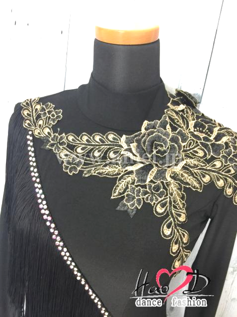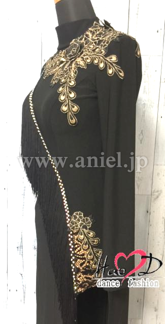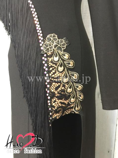 肩から裾にかけて、斜めに付けたフリンジはたっぷり踊ってくれる