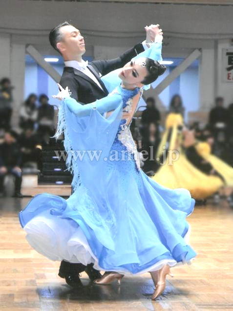 フロア上でも良く目立つと褒めていただきました。競技会にもおすすめのドレスです。