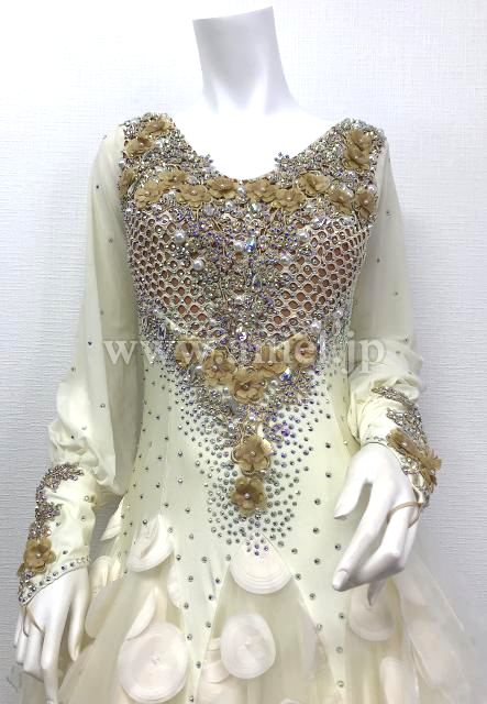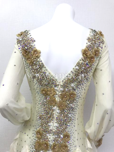 クリーム色のパフスリーブドレス