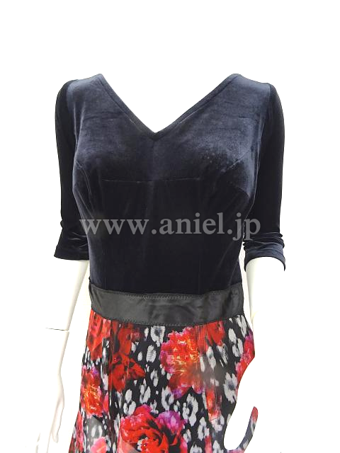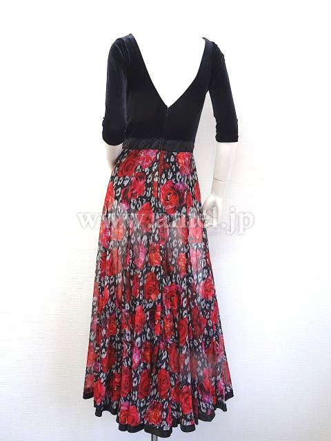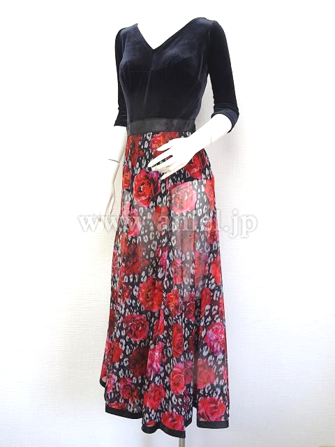 黒のベロアにスカートは透け感のある薔薇柄生地のパソドレス。