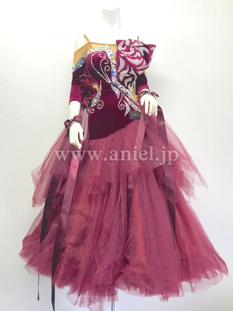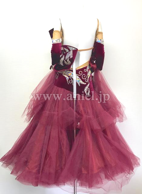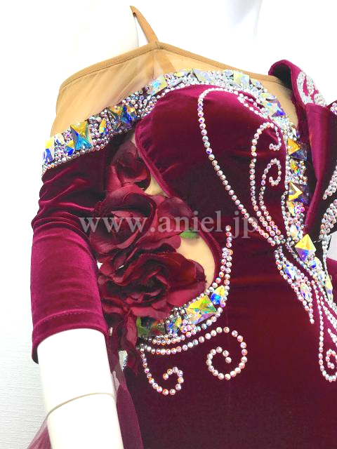 高貴なワインレッドのベルベットにひろがる豪華な装飾。