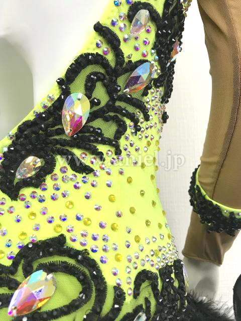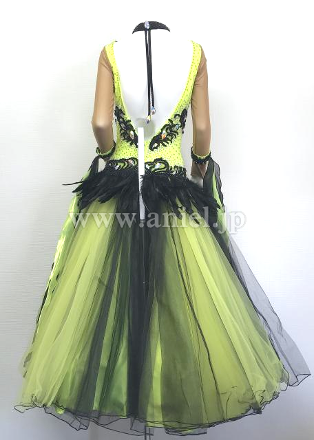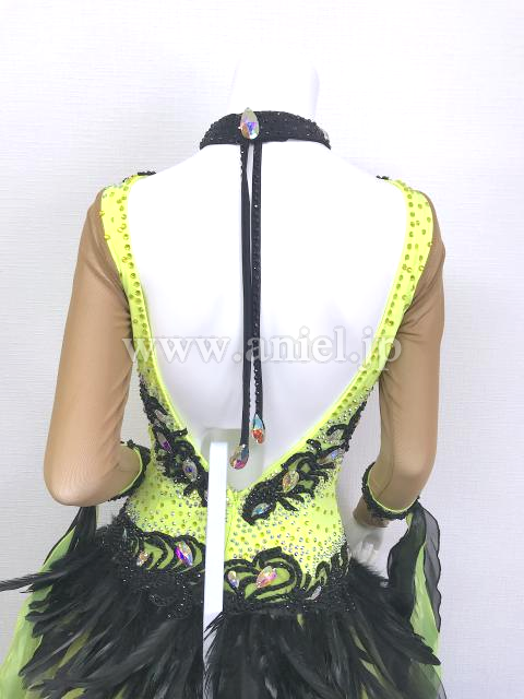 腰回りに黒の羽根の装飾がされています