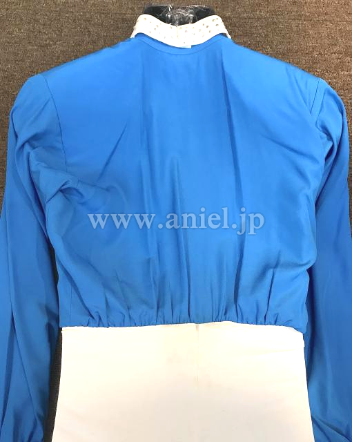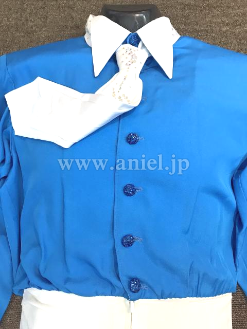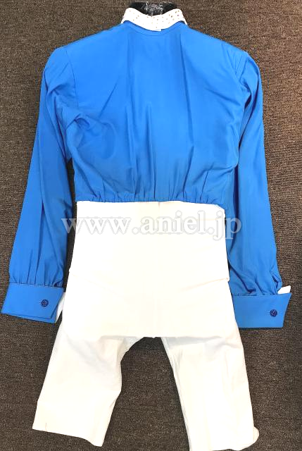 水色のシャツと白パンツの上下セット。
