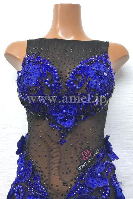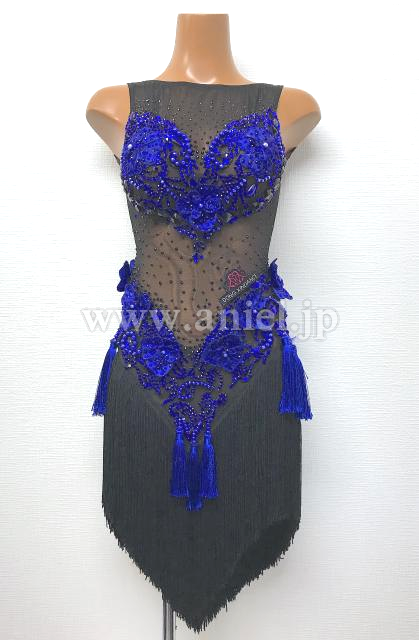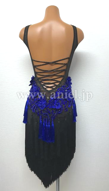 黒と青のフリンジラテンドレス